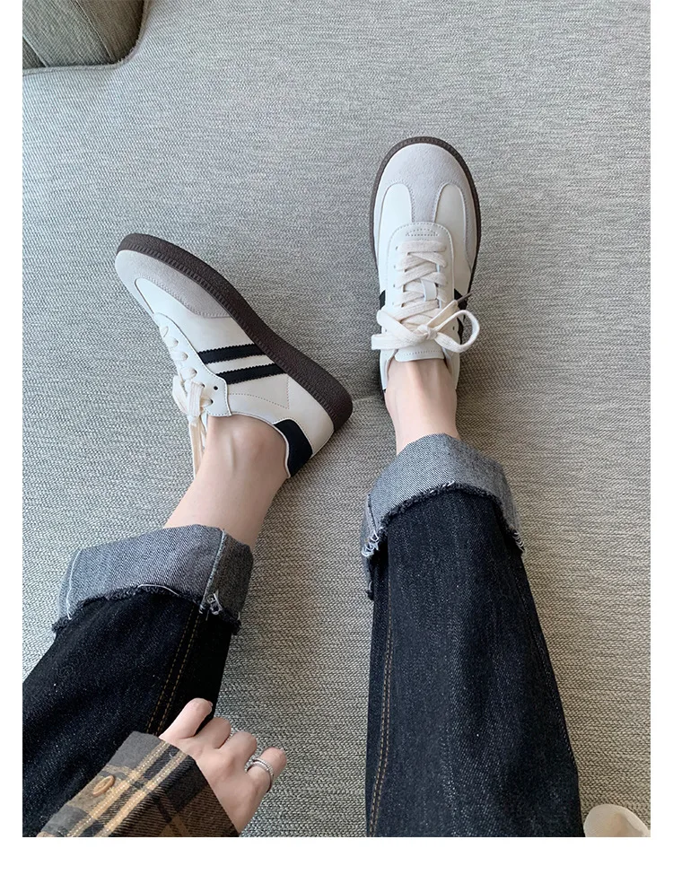 Offrez-vous une touche de style intemporel avec nos Baskets Blanches Femme en Cuir Britannique Rétro, incontournables pour toutes les fashionistas. Alliant élégance et confort, ces chaussures polyvalentes s’adaptent parfaitement à vos tenues, qu’elles soient décontractées ou sophistiquées. Plongez dans l’univers du chic britannique et laissez-vous séduire par leur design original qui saura rehausser votre garde-robe. Ne manquez pas l’opportunité de faire une déclaration de style avec ces pièces uniques, disponibles en quantité limitée.