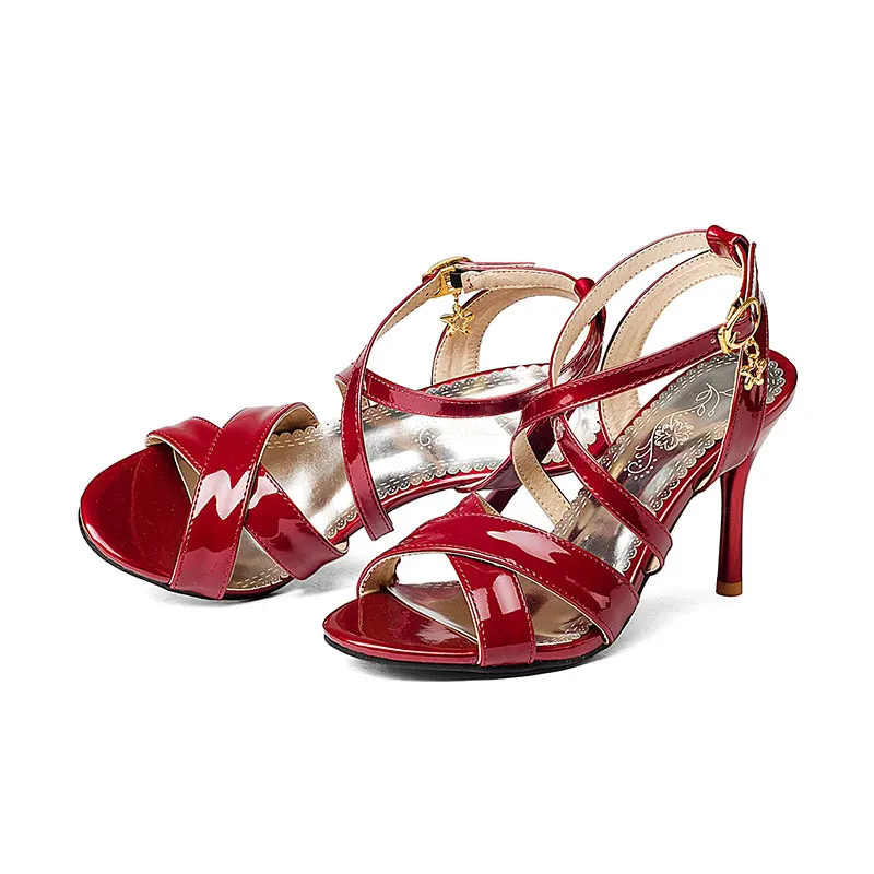 Sandale cuir verni pour femme – Rouge